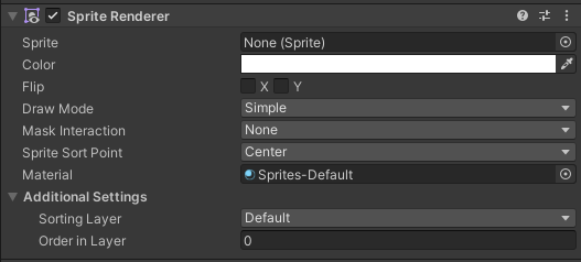 Sorting Layer:指定精灵所在的排序层。排序层决定了精灵的渲染顺序,相同排序层内的精灵可以通过Order in Layer来进一步排序。